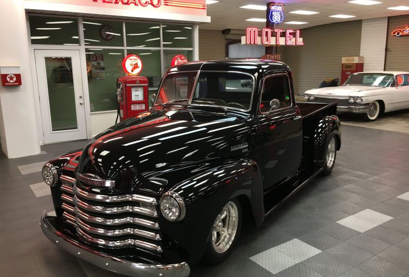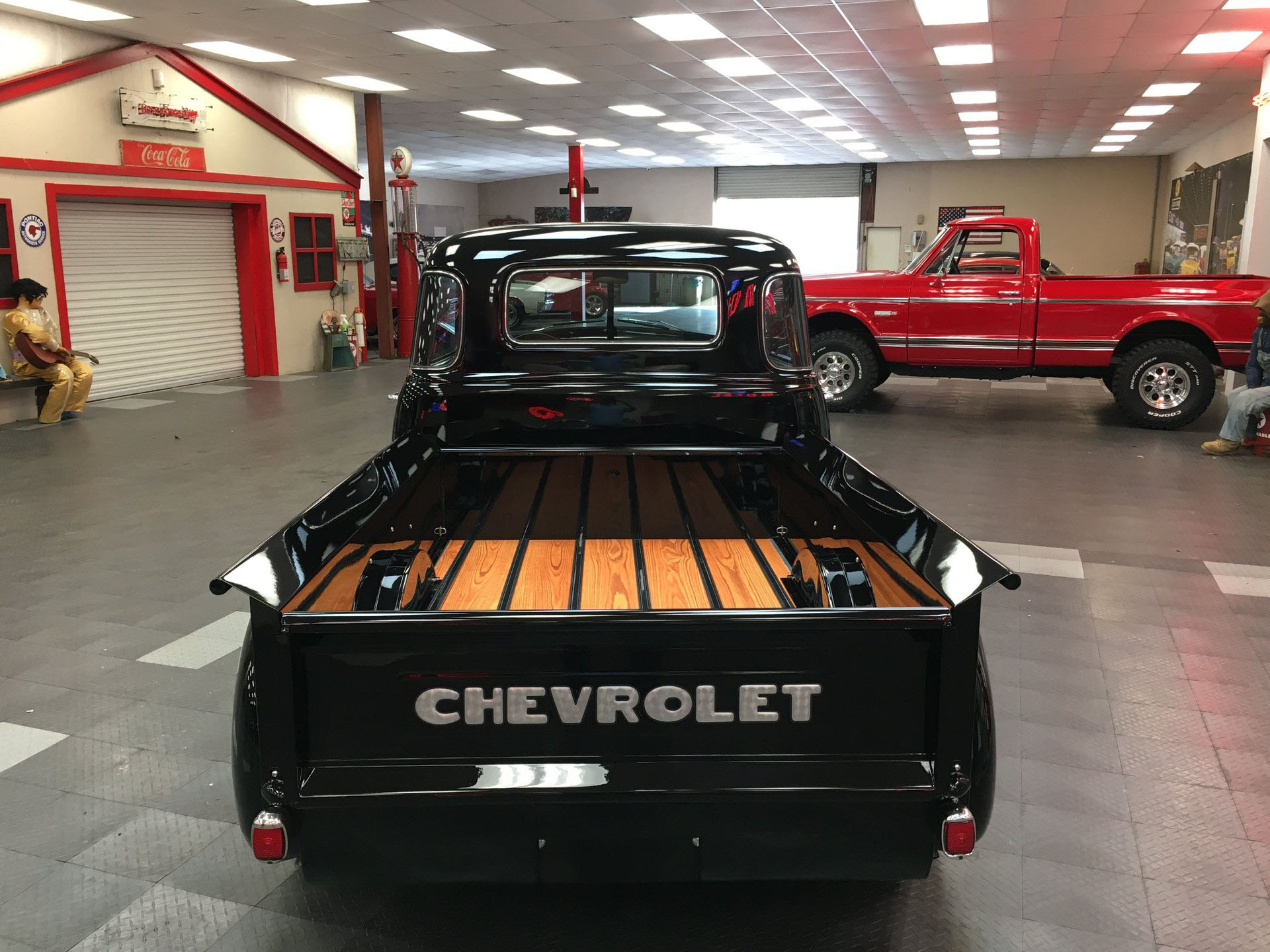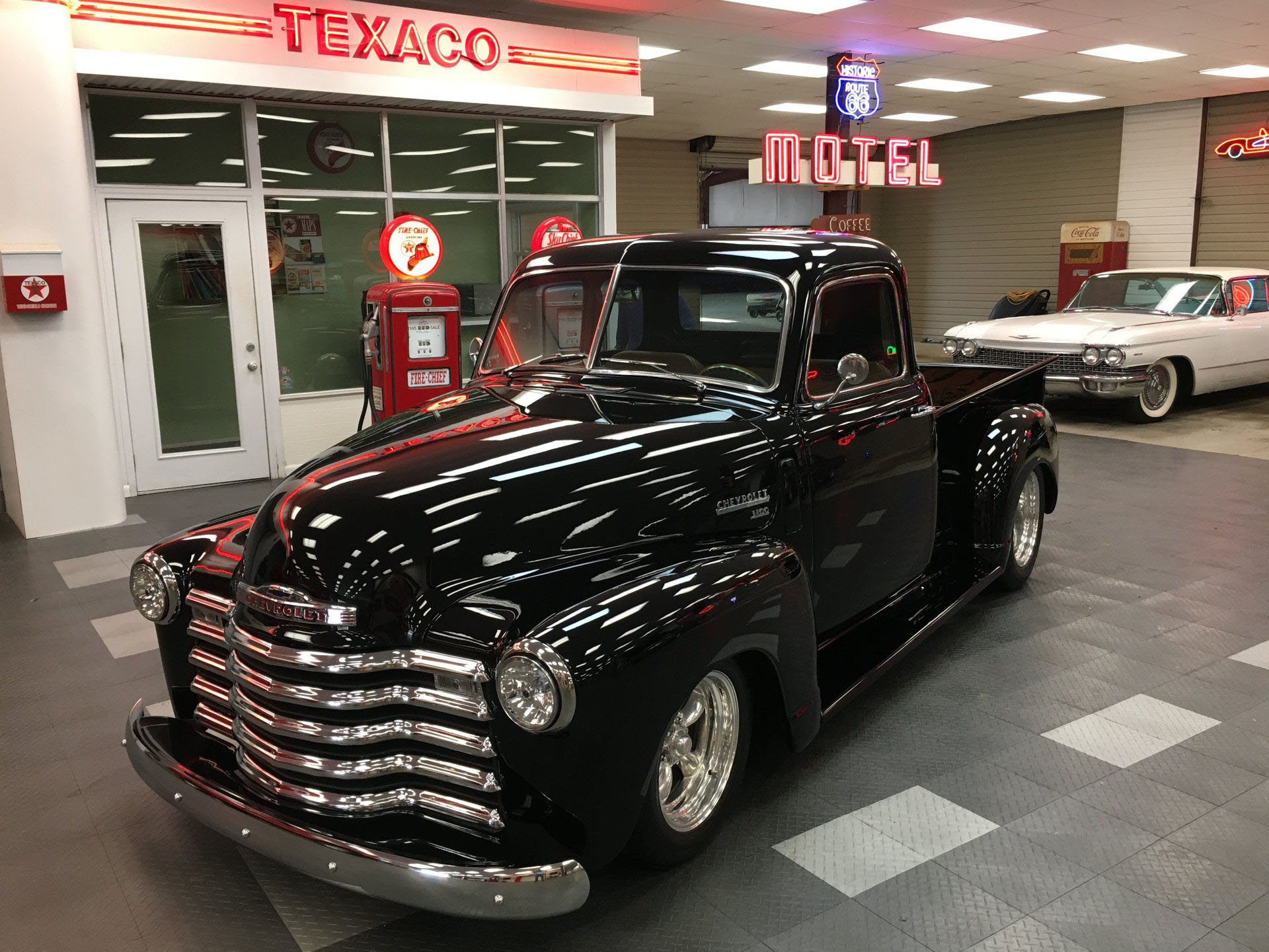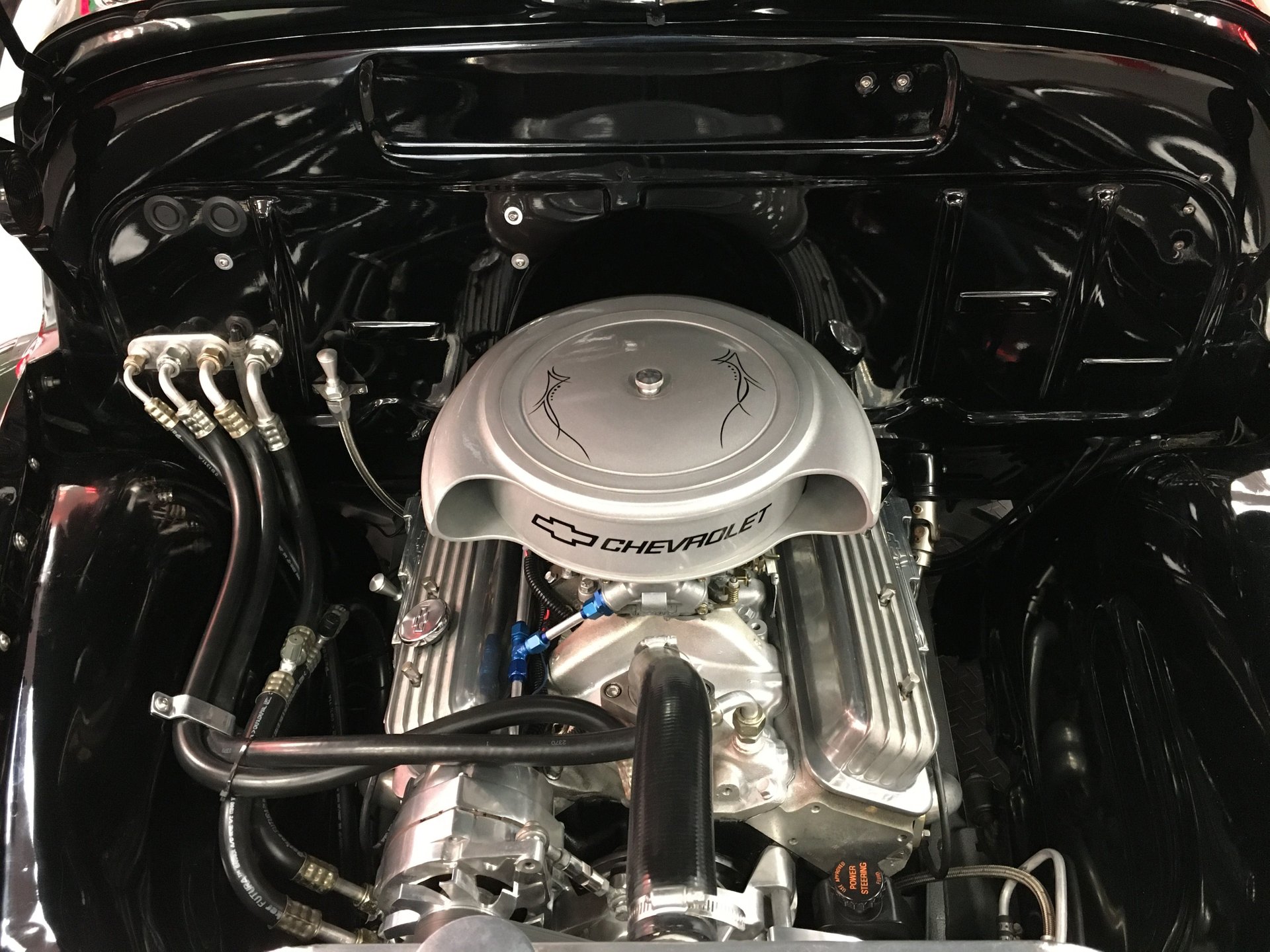 High-end 1950 Chevy 3100 5 Window Restomod with a ZZ4 350 V8, overdrive, A/C, and show-quality black paint—powerful, refined, and ready to impress.