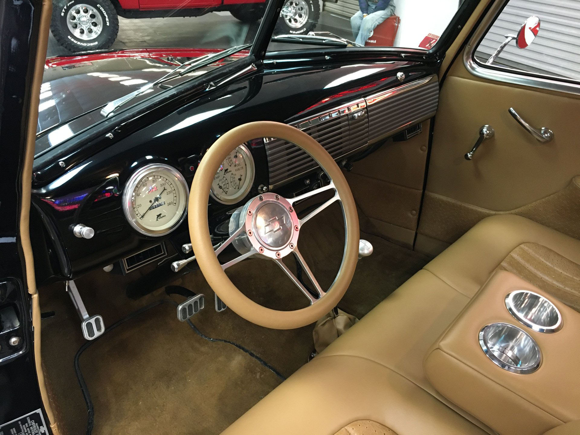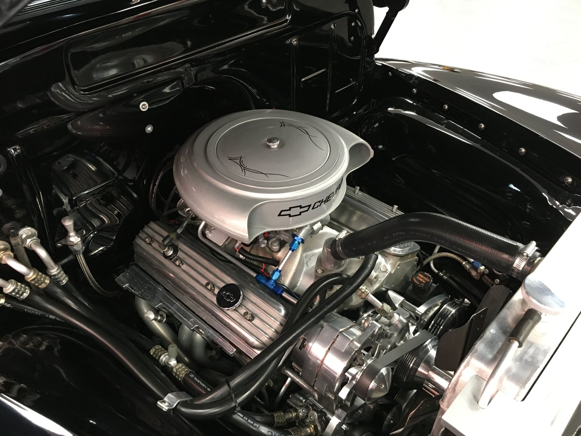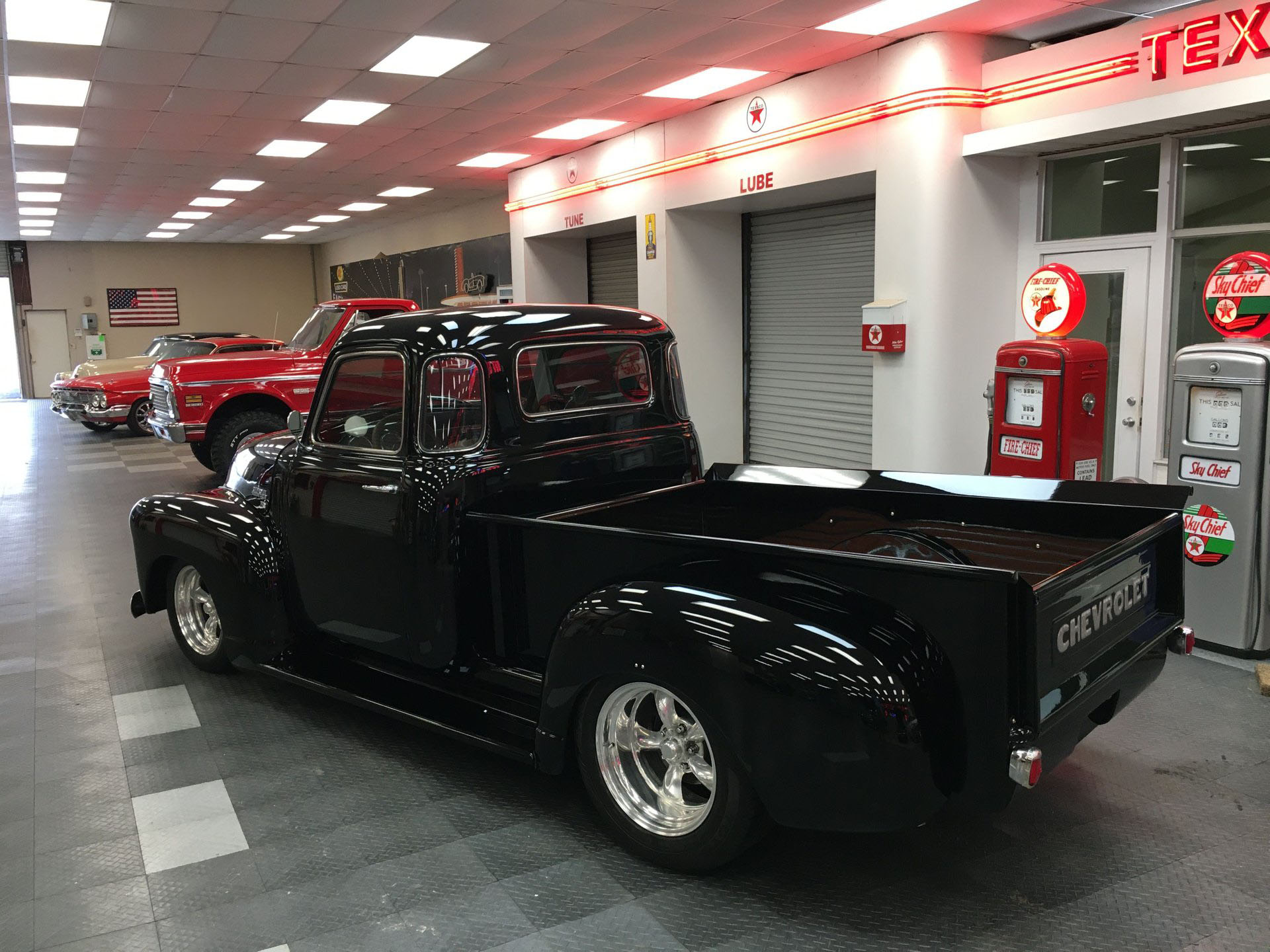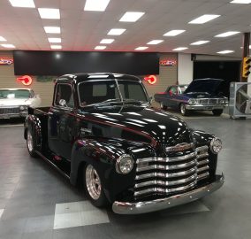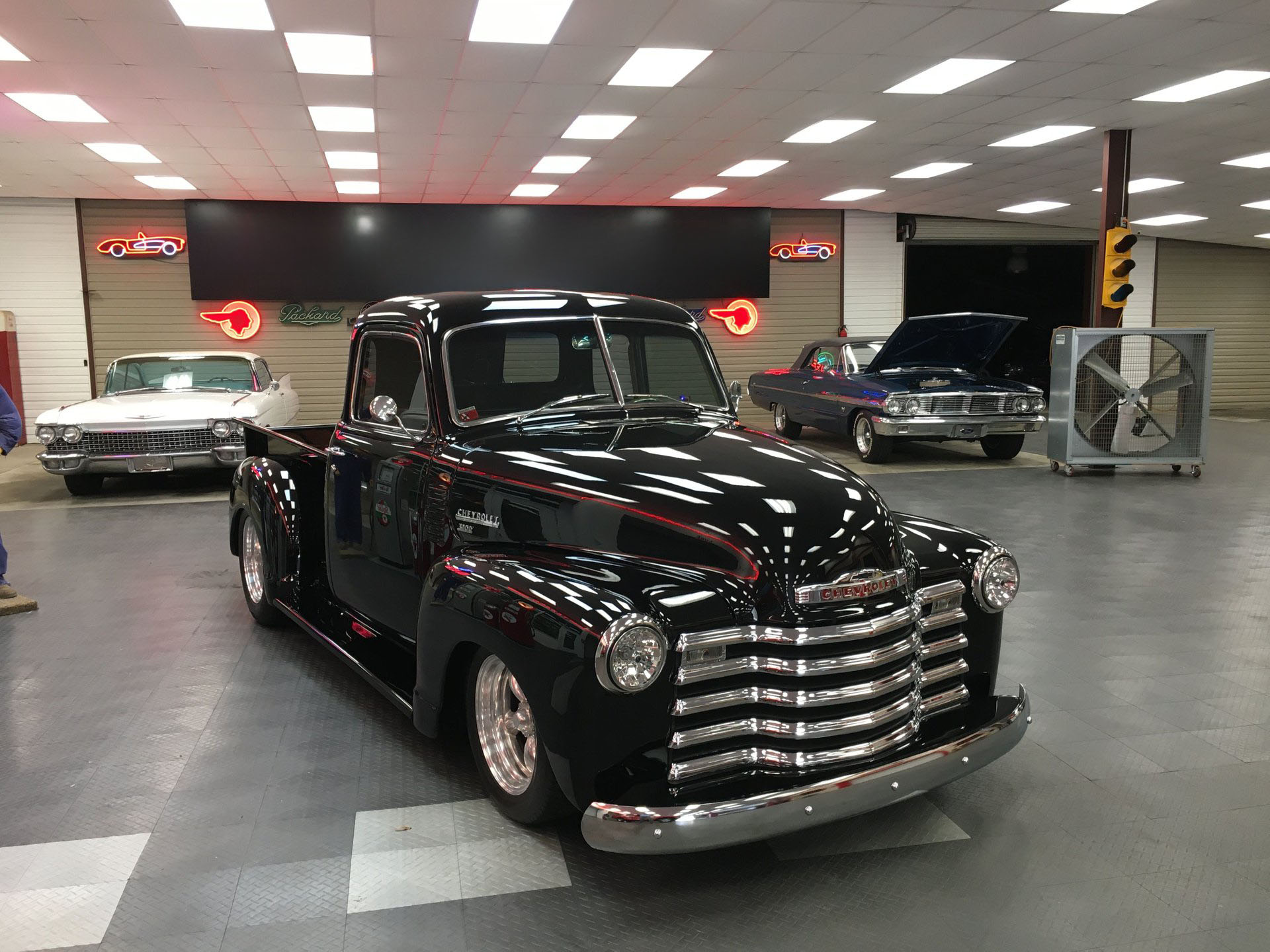 High-end 1950 Chevy 3100 5 Window Restomod with a ZZ4 350 V8, overdrive, A/C, and show-quality black paint—powerful, refined, and ready to impress.