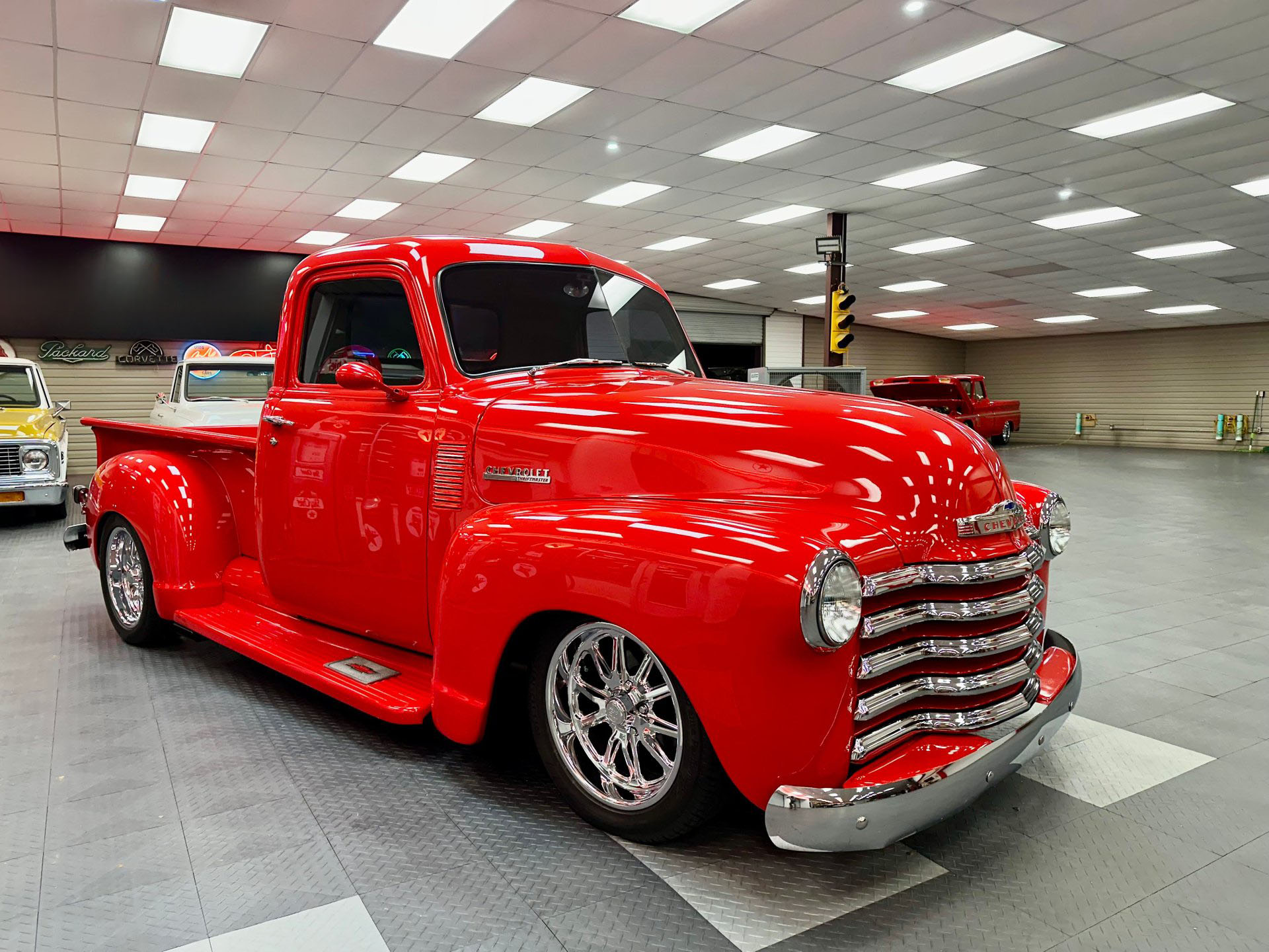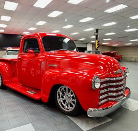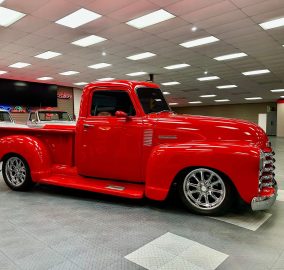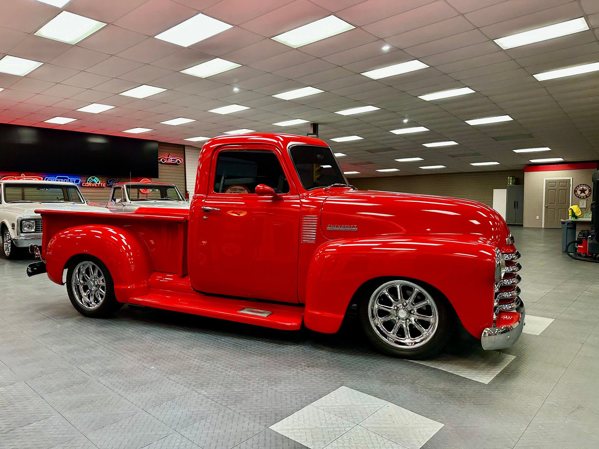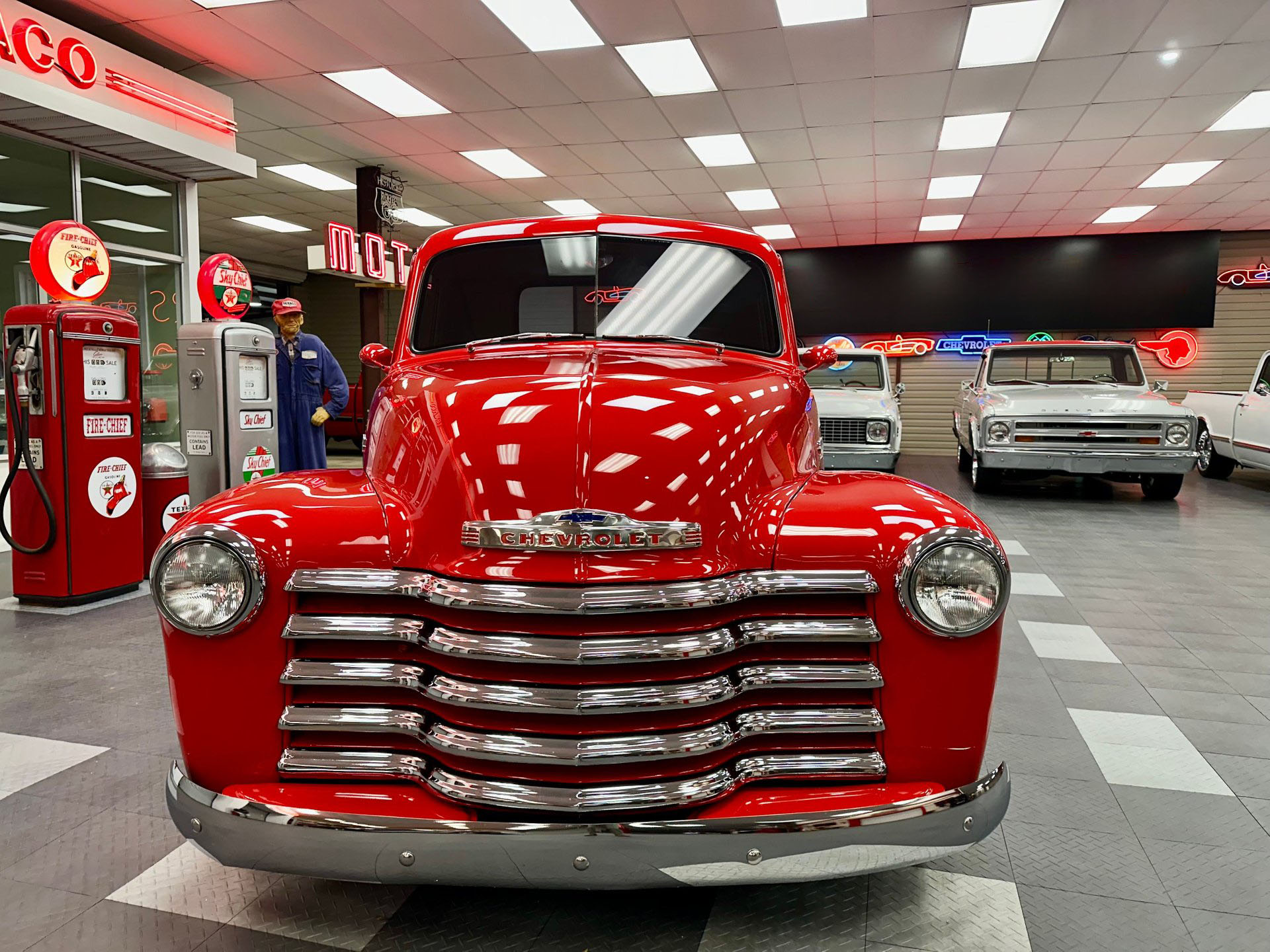 Show-quality Torch Red 1948 Chevy 3100 with a 350 V8 and overdrive, loaded with upgrades—beautifully built, reliable, and ready to turn heads.
